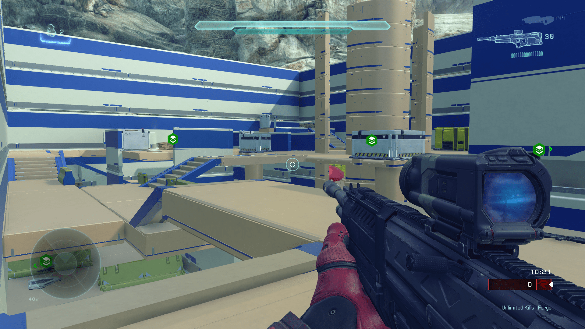 The first phase of this project involved getting familiar with the Halo 5: Forge editor and deciding whether or not make a team or free for all map. To get familiar with the editor, I began with watching a couple of guides before just starting to make some basic structures and experimenting with item spawners. I then explored the different objects and materials available to try and come up with an idea for my map.