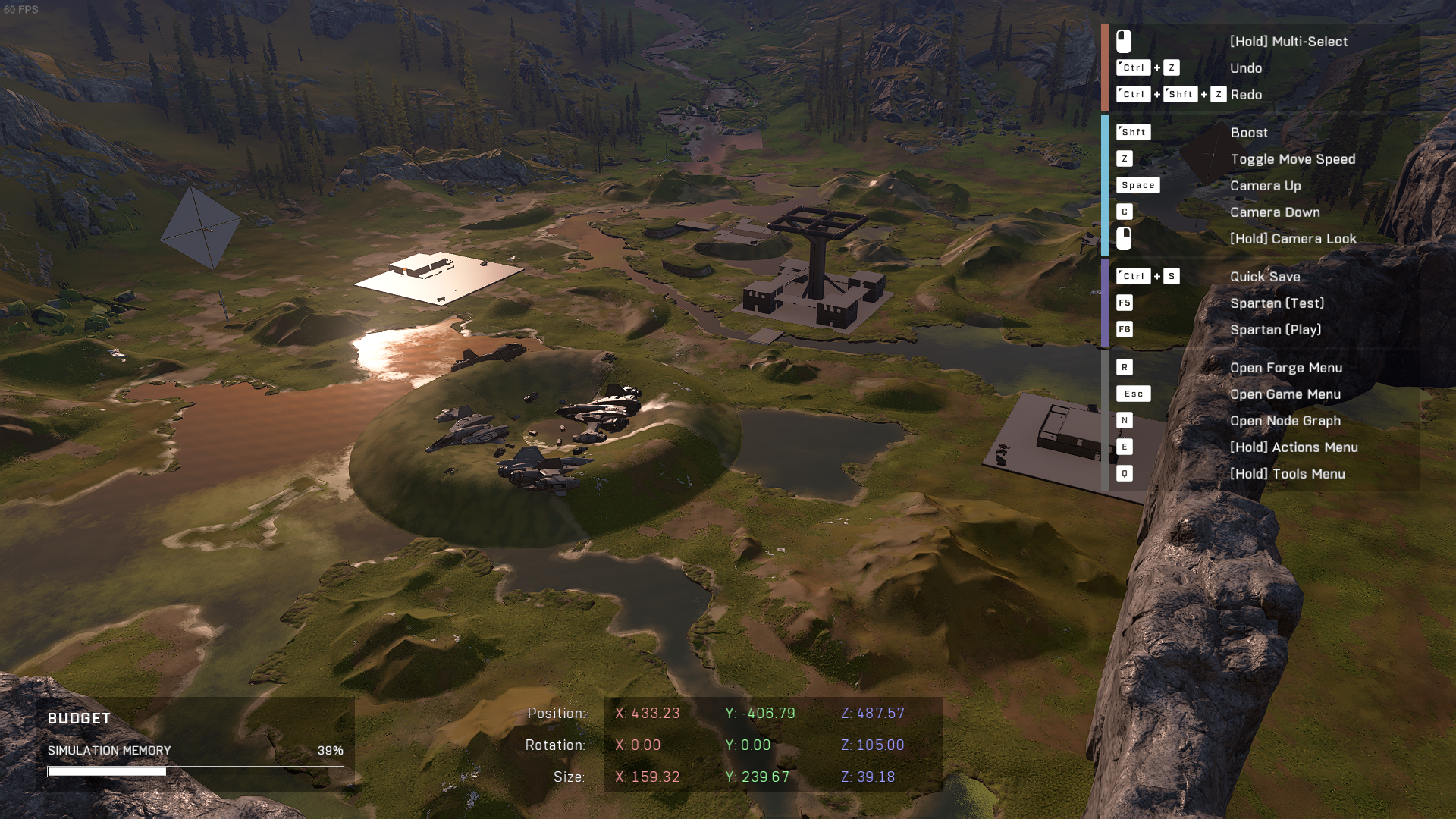 Traversal between parts of the map and on-foot viability were other major pain points in the original design. To fix this issue, each team base has jump pads that go straight to each of the four locations that aren’t a team base. Each POE also has jump pads that can be used to quickly and safely travel to a new place. To help with on-foot viability without just using jump pads, I added forested areas that cover the areas between the team bases and the tower complex, as well as forest areas between the tower complex and the crashed ship. These forest areas are inaccessible to any vehicles other than a Mongoose and provide good cover for players trying to get from place to place without a vehicle or jump pad.